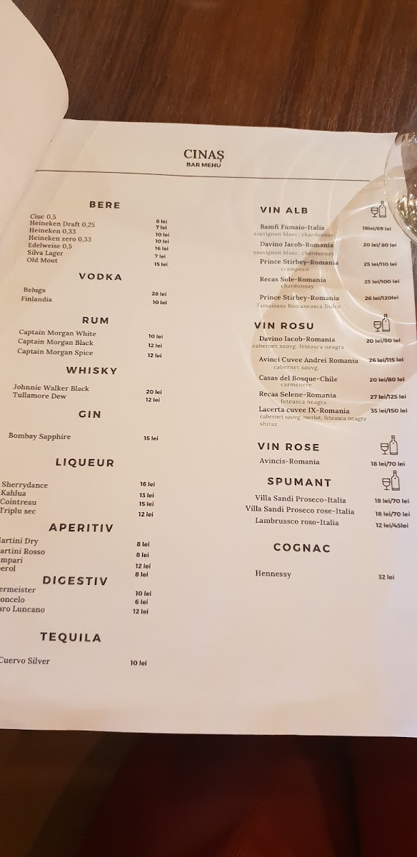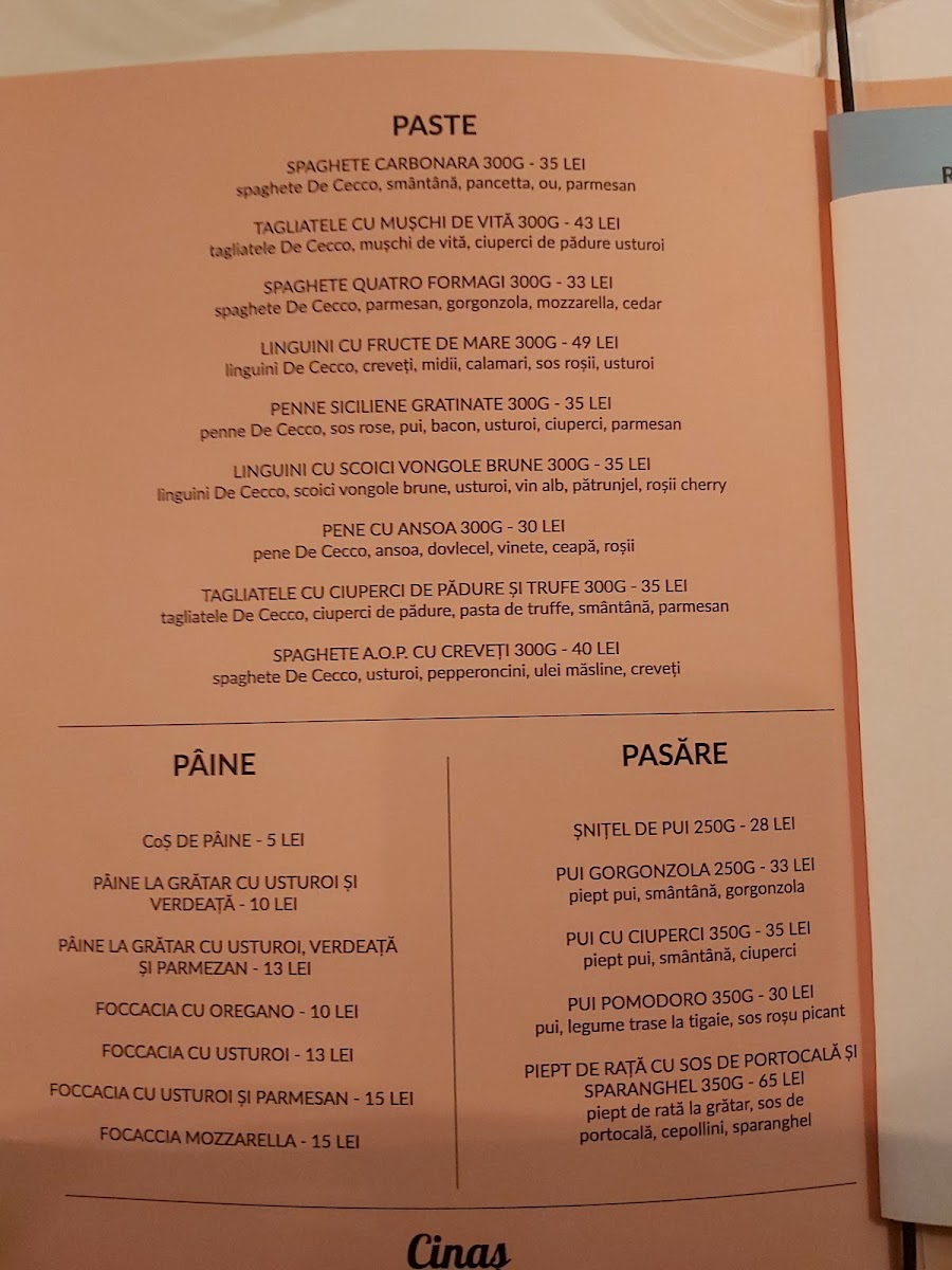 Cinaș - Bucharest Menu